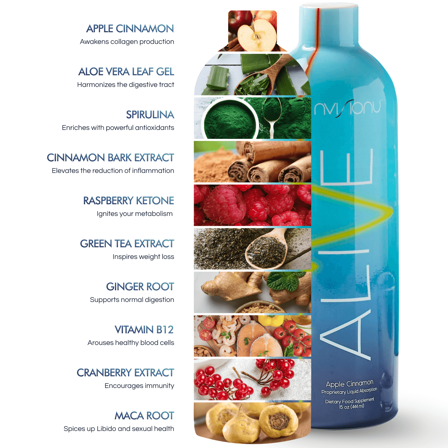 Feel alive with ALIVE AC — a naturally energizing blend of crisp apple and warming cinnamon. Crafted to support healthy blood sugar and metabolism, this refreshing formula helps fuel your day with clean, balanced energy.