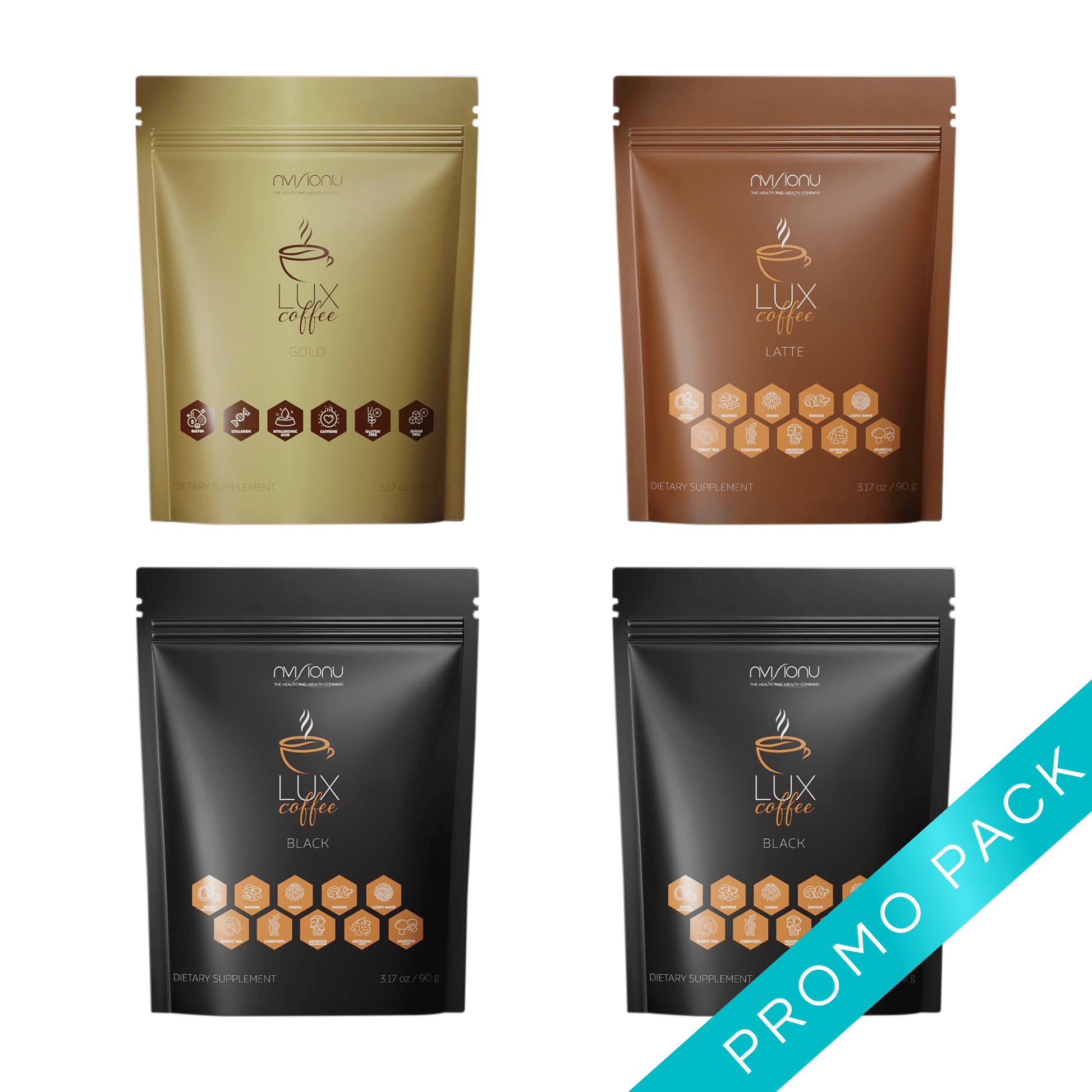 Discover the perfect combination of flavor, wellness, and energy with the LUX COFFEE (4-PACK). This exclusive selection offers a variety of rich, high-quality coffees to fit your daily routine.